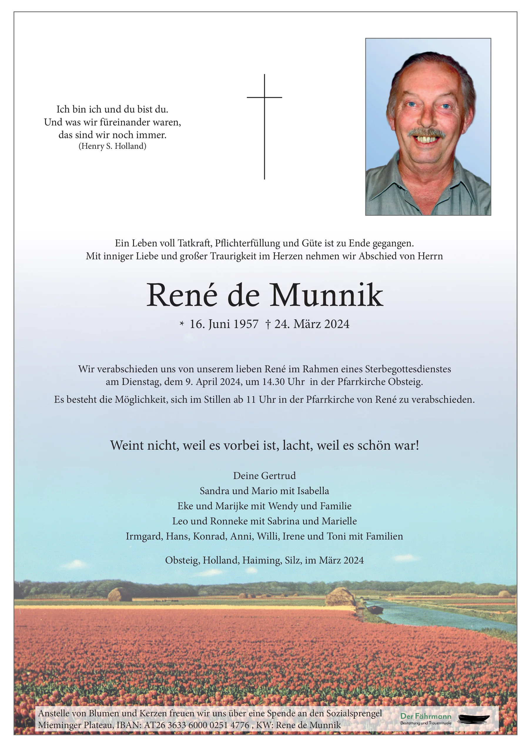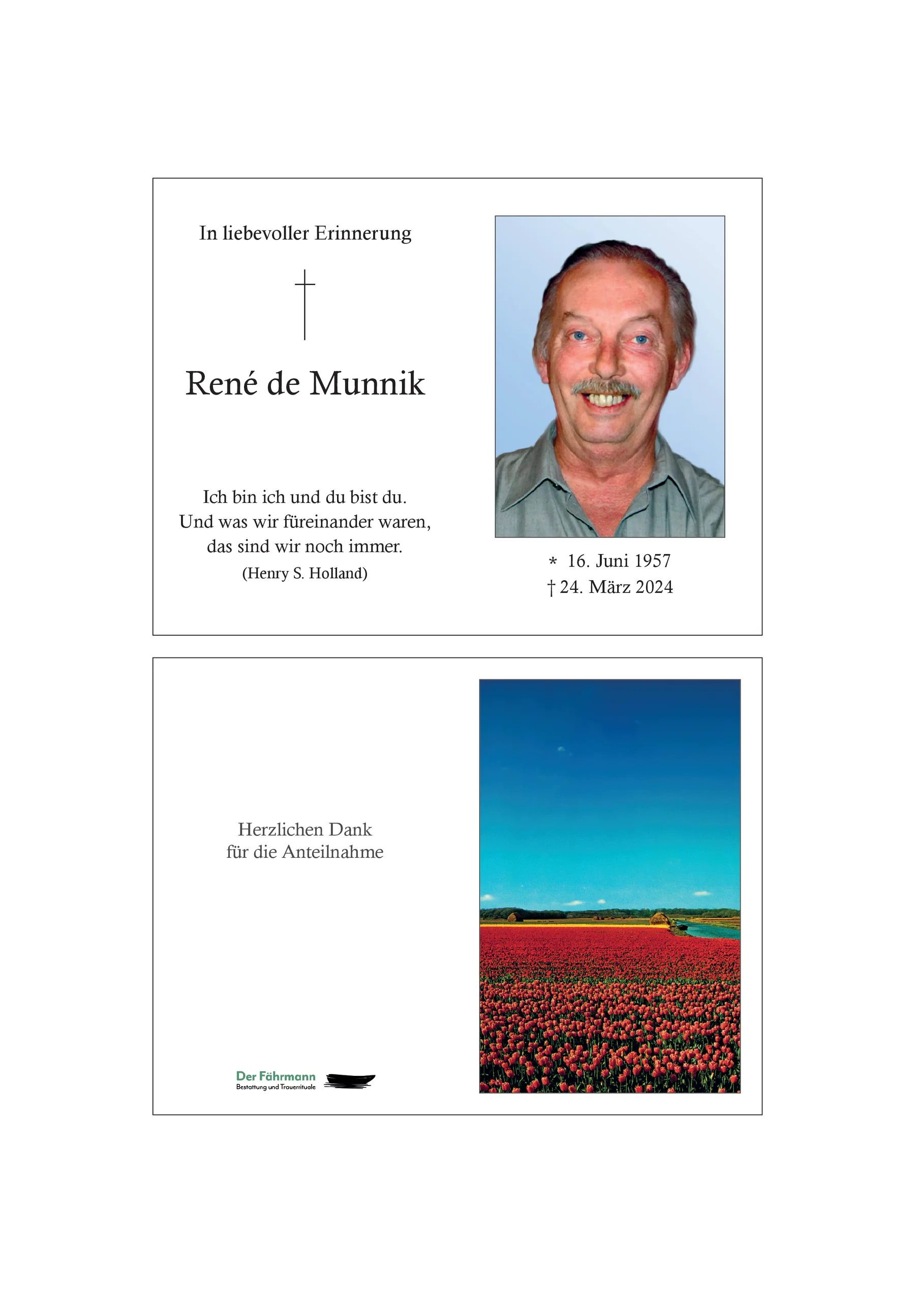 Lieber René, ruhe in Frieden. Danke, dass ich dein Bruder sein durfte. Liebe Gertrud, wir wünschen Dir viel Kraft zum Verlust von René