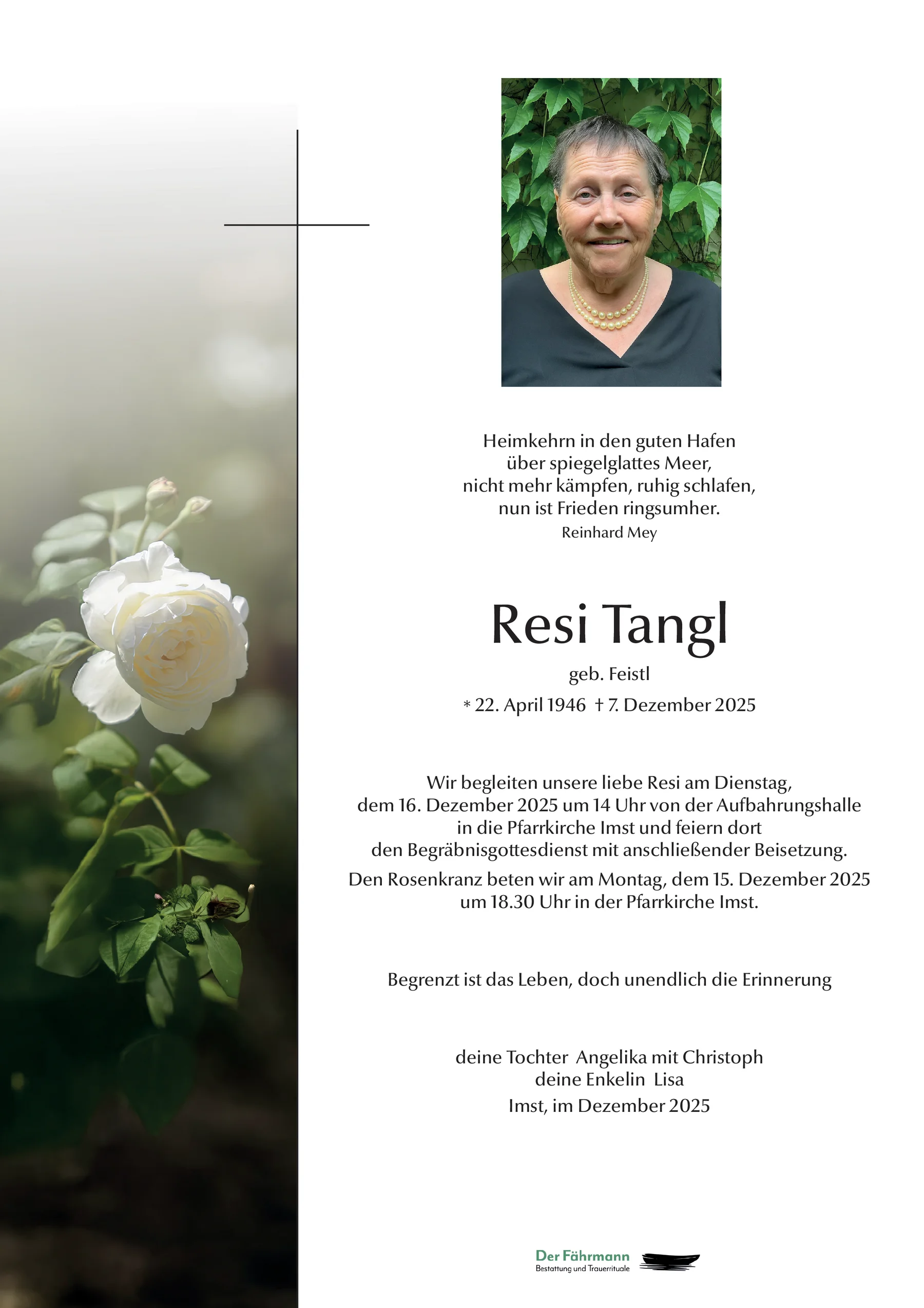 Kondolenzbuch für Resi Tangl