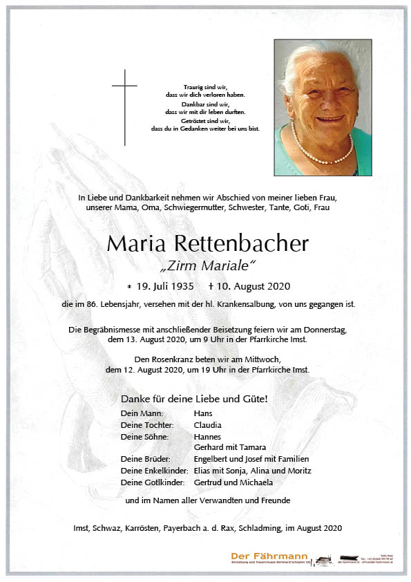 Aufbahrungs-Ort: Mi. 12.08.2020, Aufbahrungshalle Imst
