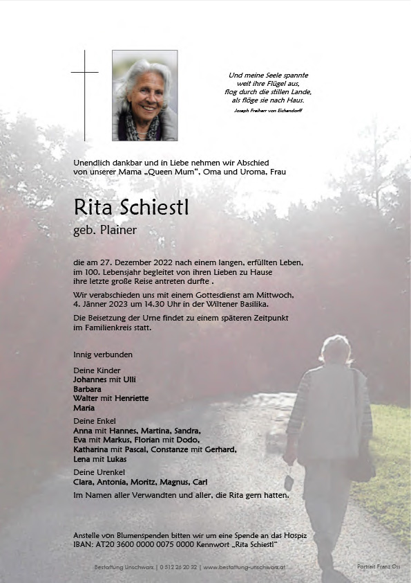 Rita Schiestl 01.01.1970 27.12.2022 Innsbruck Parte Gedenkkerzen Kondolenzen Parte downloaden Gedenkkerzen für Rita Schiestl 3 Einträge Kerze anzünden Ruhe in Frieden 🕯✨️ Ein Licht für die Reise Eine gute Überfahrt Bestattung Der Fährmann Eine Kerze für Rita Schiestl Ihr Name* Ihre Nachricht oder Name* E-Mail-Adresse* Mit dem Klicken auf "Kerze anzünden" erklären Sie sich mit unseren Datenschutzbestimmungen einverstanden. Kondolenzbuch für Rita Schiestl 0 Einträge Kondolenz verfassen Ihr Abschiedsgruß an Rita Schiestl Ihr Name* E-Mail-Adresse* Ihre Nachricht* Mit dem Klicken auf "Gruß absenden" erklären Sie sich mit unseren Datenschutzbestimmungen einverstanden. Rita Schiestl 01.01.1970 – 27.12.2022 Parte Gedenkkerzen Kondolenzen Kerze anzünden Kondolenz verfassen