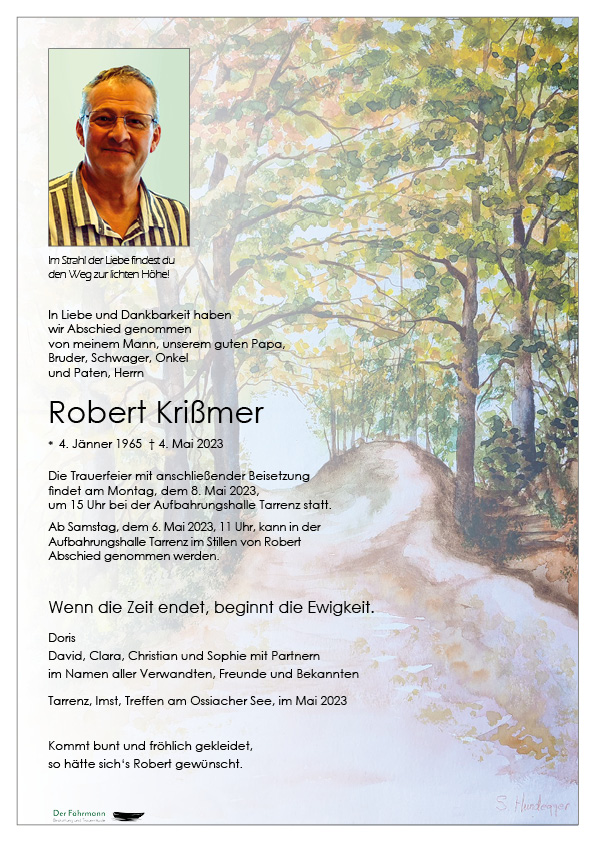 Ich wünsche Robi‘s liebsten Menschen viel Kraft und Zuversicht für die Zeit des Wartens, mögen seine Spuren euch mit Freude und Dankbarkeit erfüllen.
