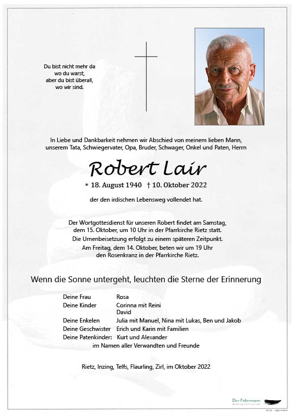 Kondolenzbuch für Robert Lair