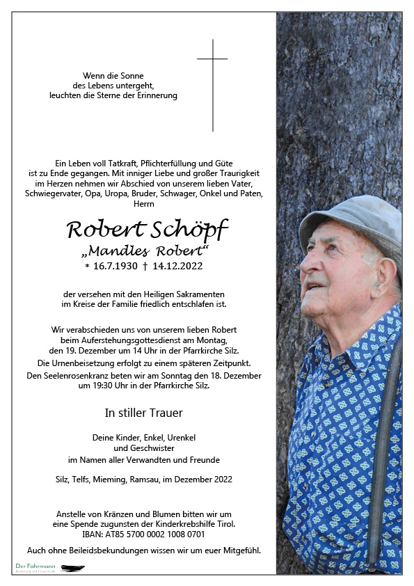 Kondolenzbuch für Robert Schöpf
