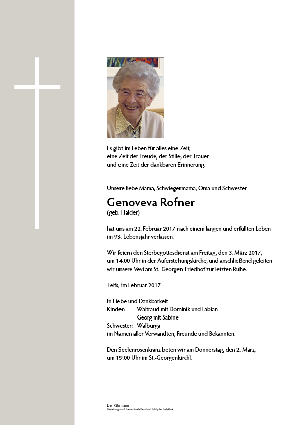 Kondolenzbuch für Rofner Genoveva
