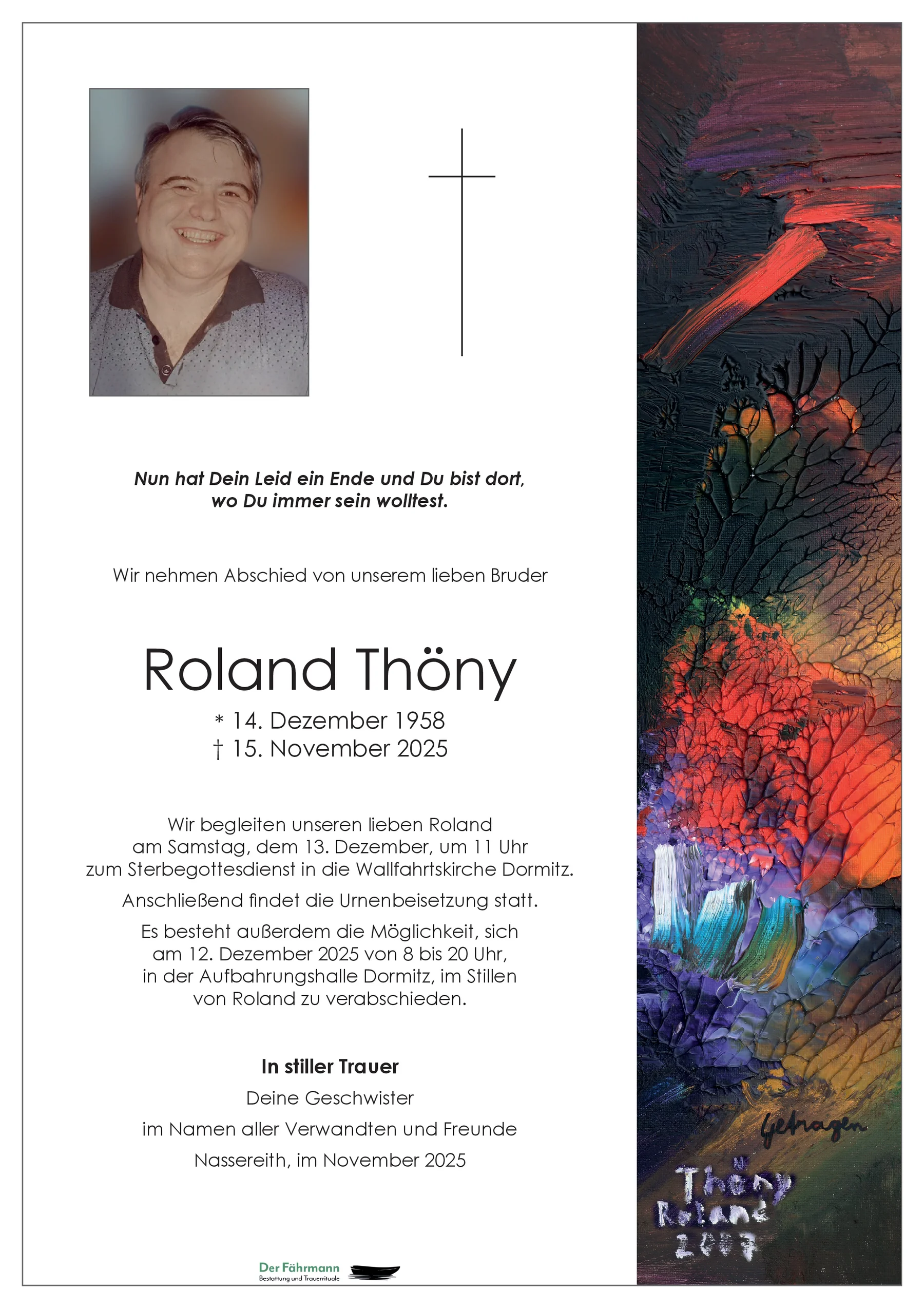 Sei getragen - und geborgen in Gottes Hand, lieber Roland! S.