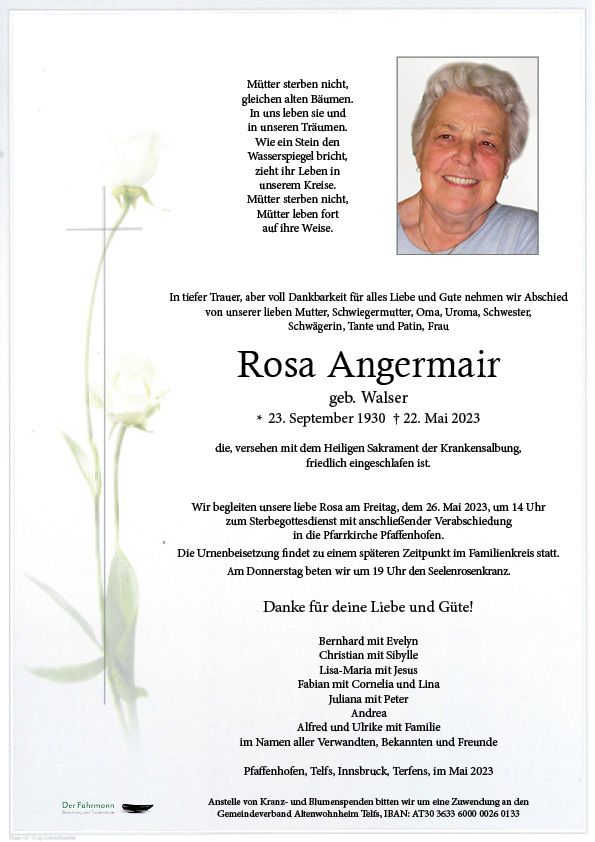 Ruhe in Frieden Rosa. Spötl Robert, Susanne mit Lena
