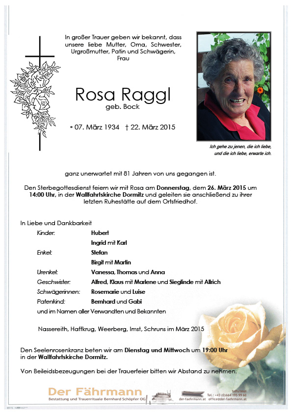 Kondolenzbuch für Rosa Raggl