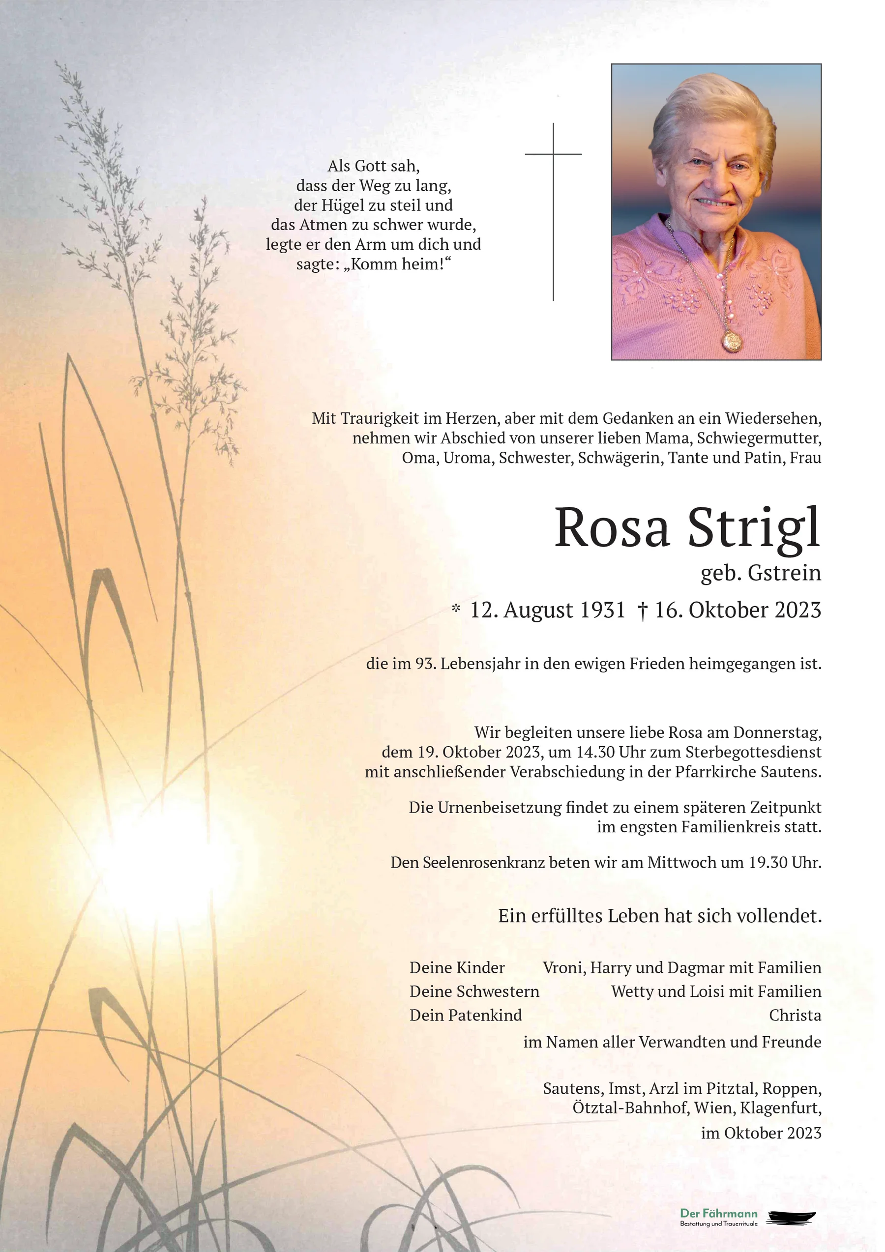 Ruhe in Frieden, liebe Rosa! Das gesamte Pflegezentrum Pitztal Team