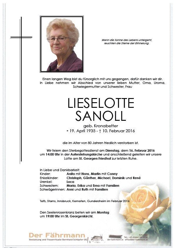 Kondolenzbuch für Sanoll Lieselotte