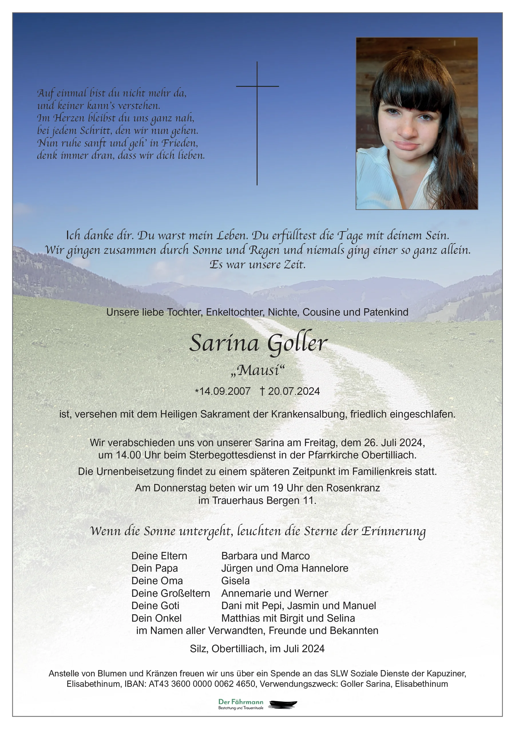 Aufrichtige Anteilnahme! Maria Goller Bergen 31