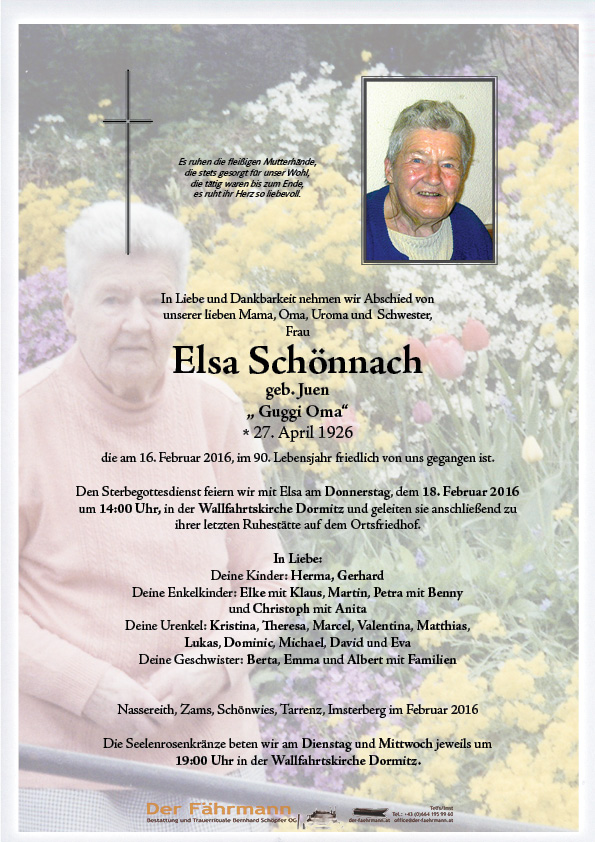Liebe Hermi, Gerhard und Trauerfamilie! Die Mutter wars, was brauchts der Worte mehr! Aufrichtige Anteilnahme entbieten von Herzen Herma mit Familie