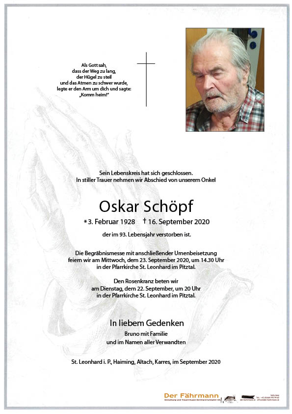 Kondolenzbuch für Schöpf Oskar