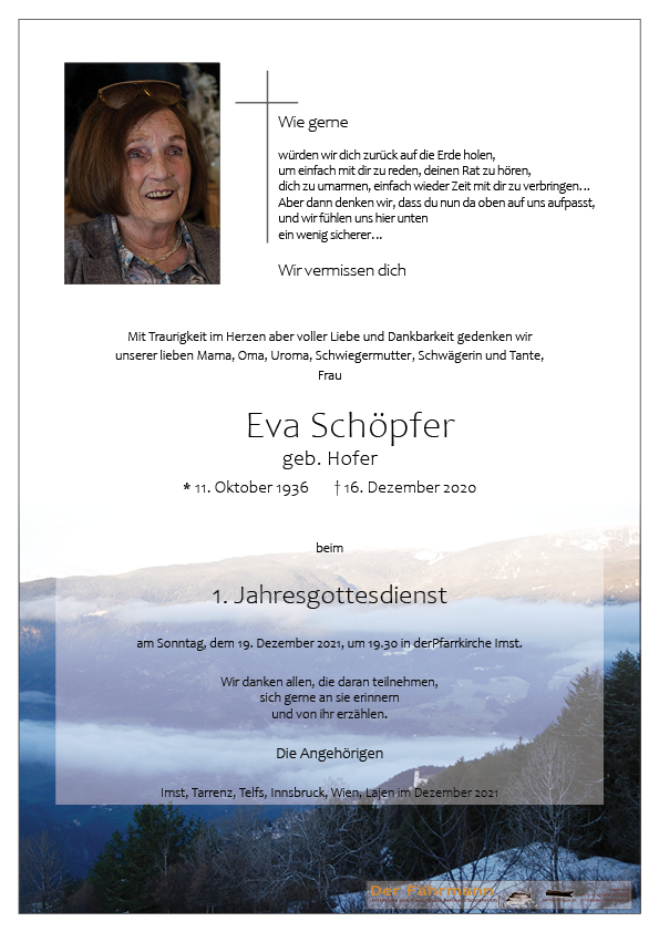 Danke für alles, Evi! Ruhe in Frieden. Maria