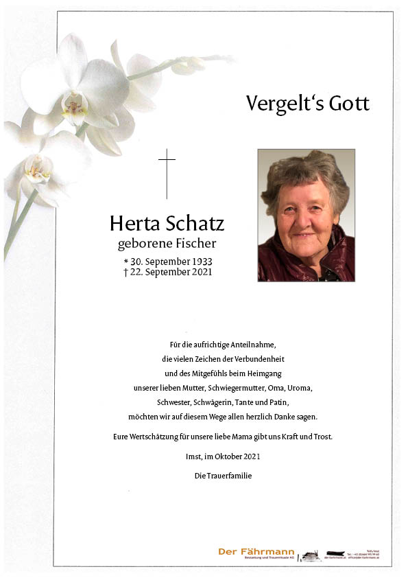 Denke gern an die netten Gespräche mit Dir. Machs guat Herta