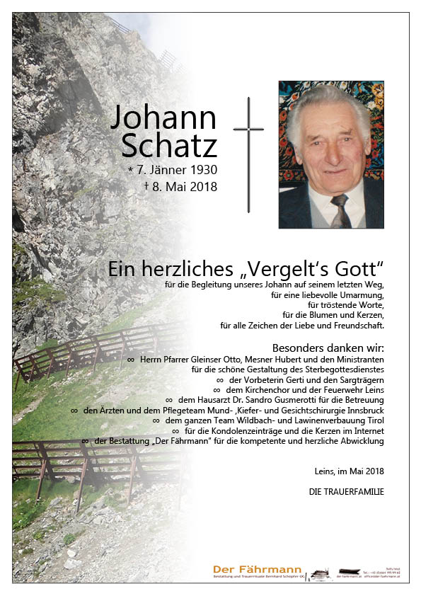 Kondolenzbuch für Schatz Johann
