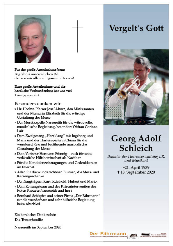 Kondolenzbuch für Schleich Georg Adolf