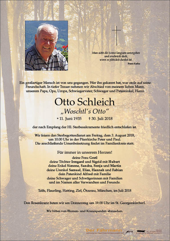 Er hat seinen irdischen Weg vollendet. Gönnt ihm die ewige Ruhe. Aufrichtige Anteilnahme.