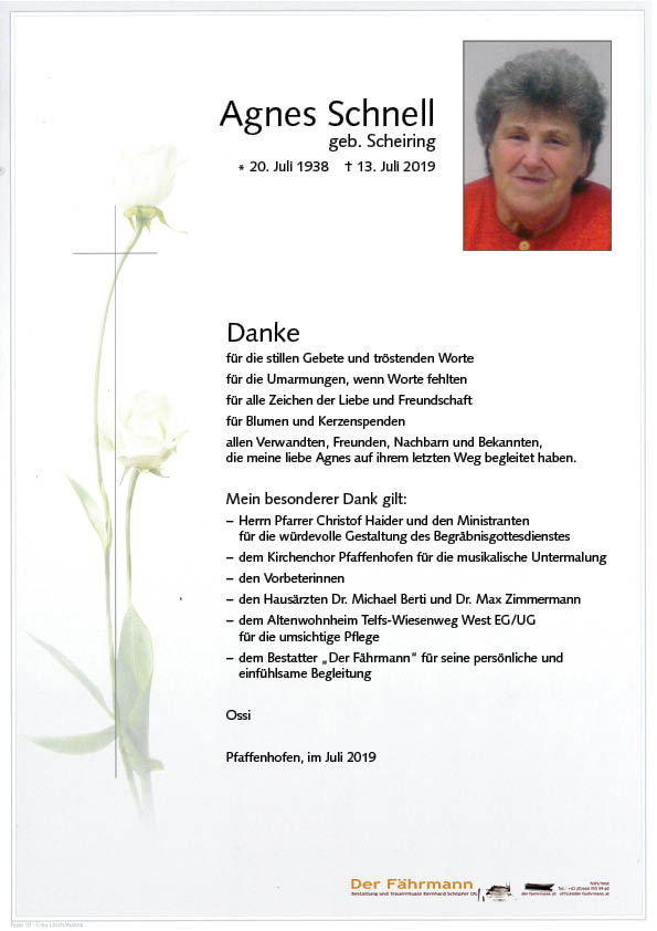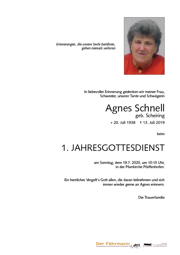 Kondolenzbuch für Schnell Agnes