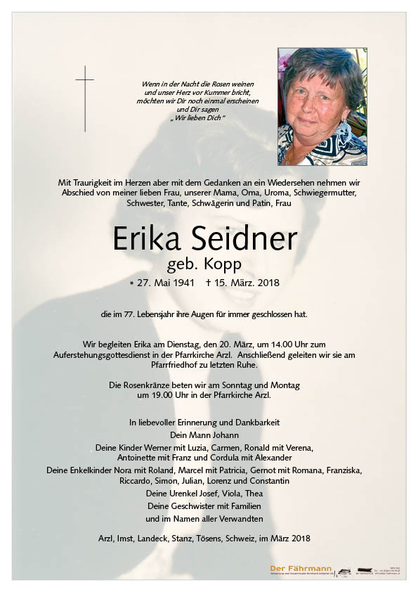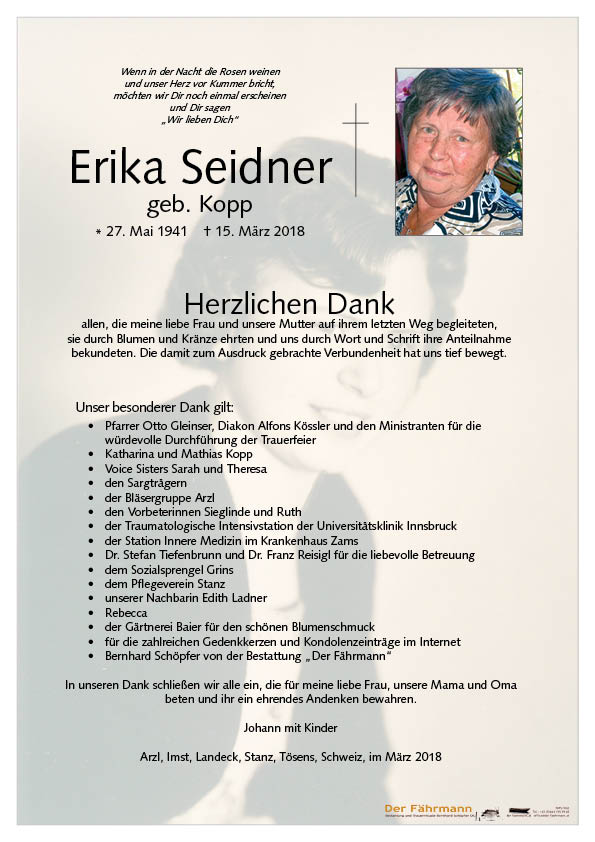 unser mitgefühl mit der gesamten familie, erika war eine sorgsame und liebevolle mutter, wir werden sie nicht vergessen