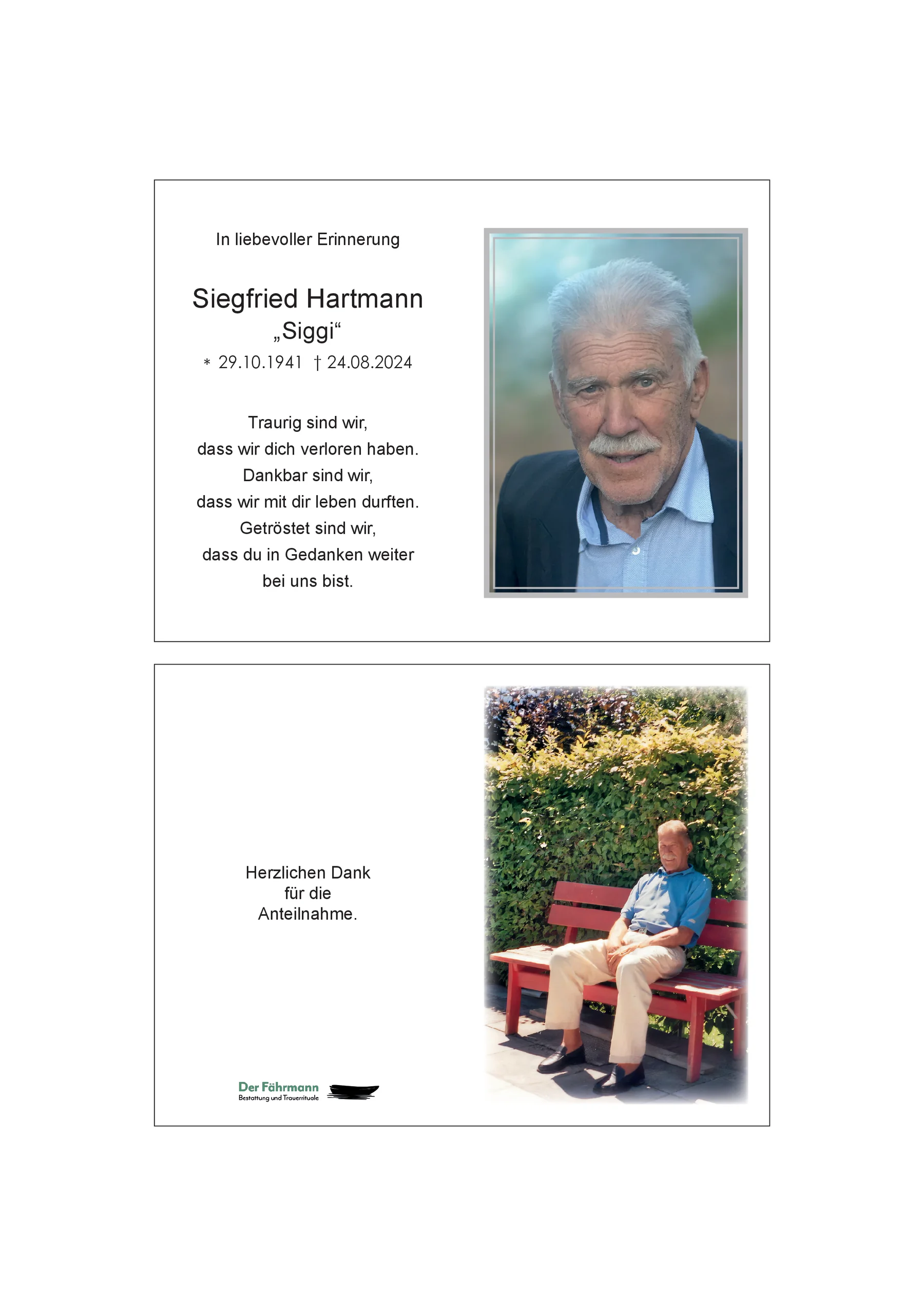 Ruhe in Frieden lieber Sigi! Klaus Martina Daria Raoul und Tabea