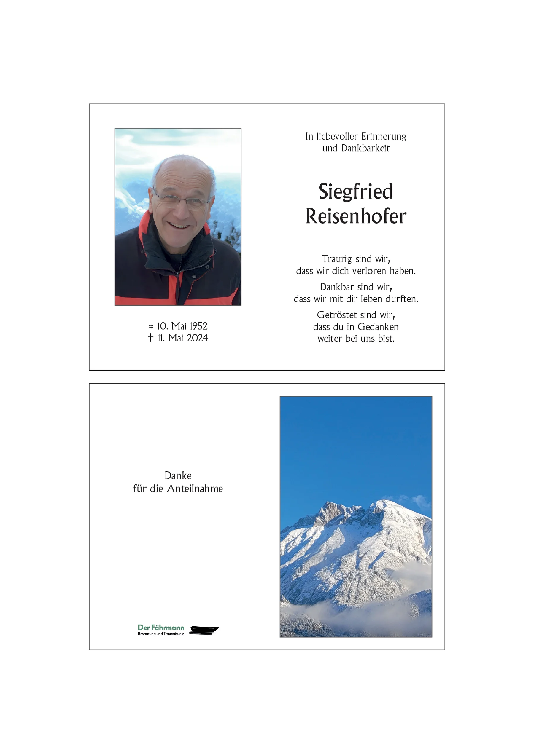 Aufrichtiges Beileid Fam. Otmar und Marlis Reinalter