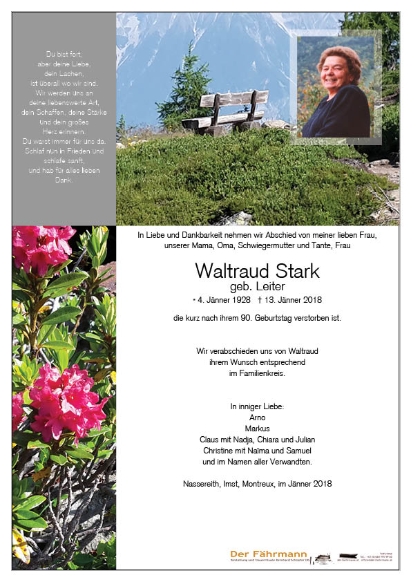 Mai Hearle, insr Tante Waltraud isch verstarben. Kopp Werner