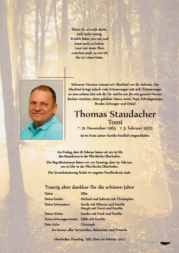 Kondolenzbuch für Thomas Staudacher