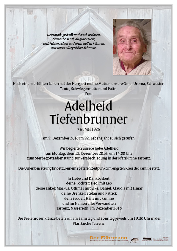 Kondolenzbuch für Tiefenbrunner Adelheid
