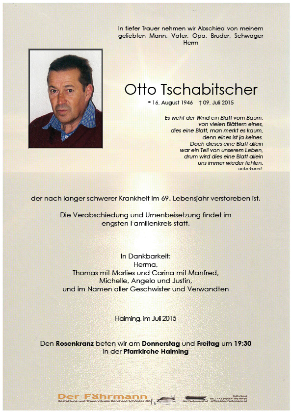 Kondolenzbuch für Tschabitscher Otto