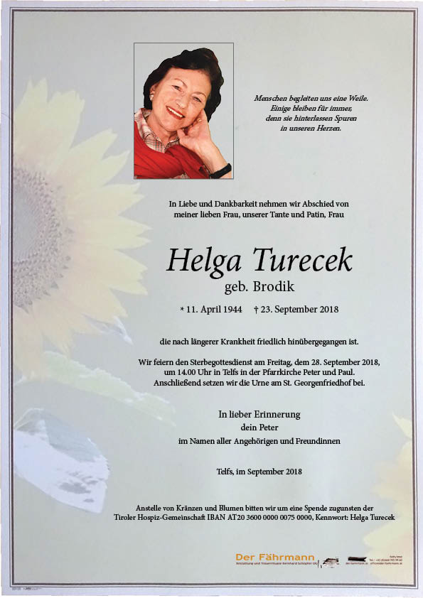 Kondolenzbuch für Turecek Helga