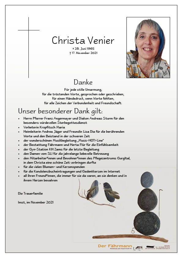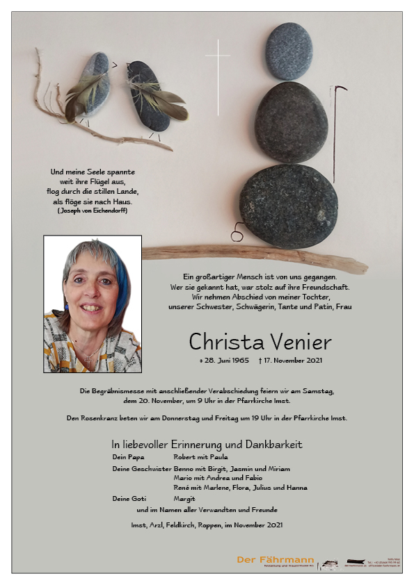 Kondolenzbuch für Venier Christa