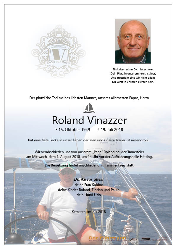 Roland, Du hast in deinem Leben immer viel Freude, Lebenslust, Herzlichkeit und Hilfsbereitschaft weitergegeben.