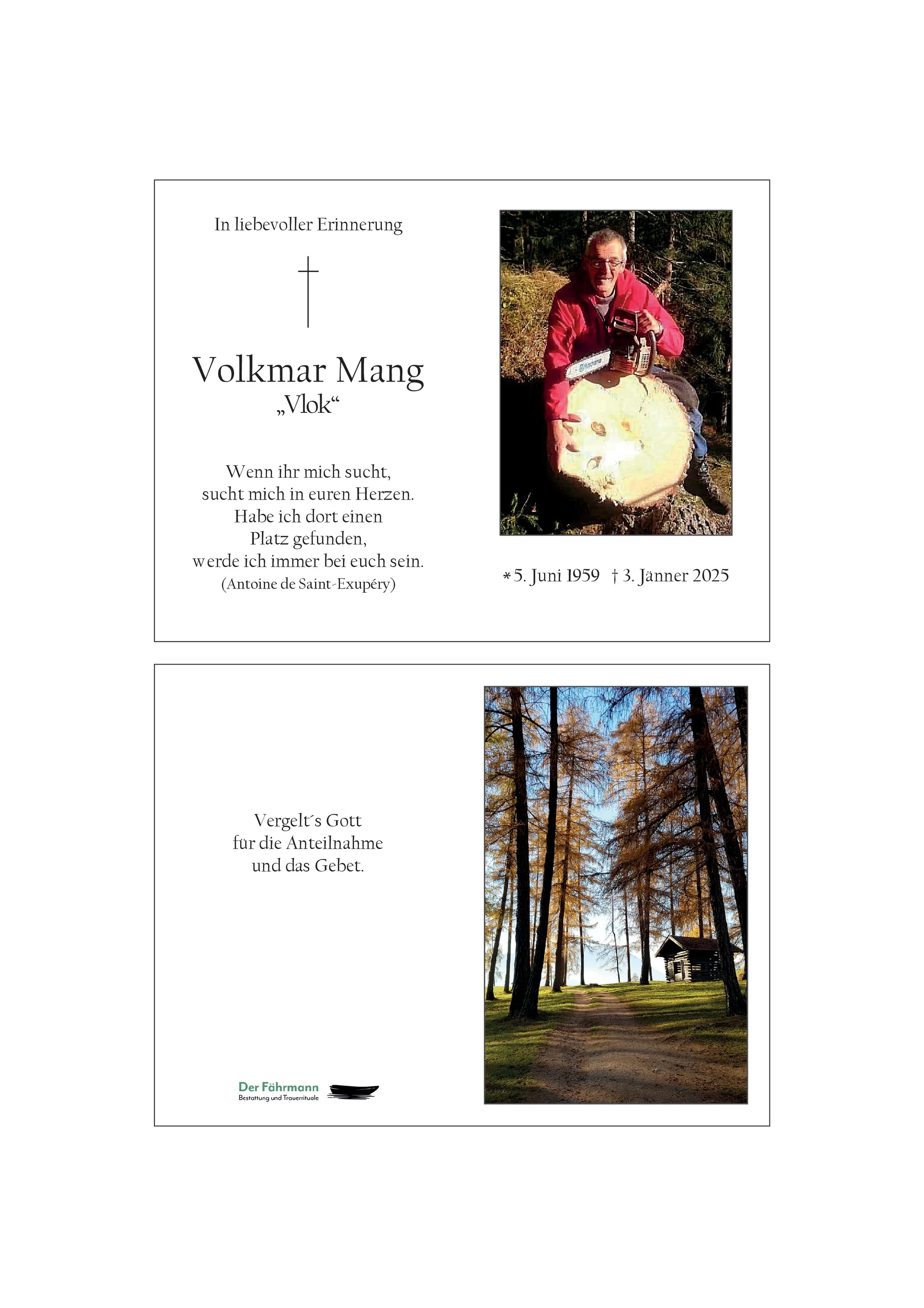 Als Gott sah, dass der Weg zu lang, der Berg zu steil und das Atmen zu schwer wurde, legte er den Arm um ihn und sagte "komm Heim". Liebe Annelies, wir denken ganz fest an dich und wünschen Dir und deinen Kindern viel Kraft in dieser schweren Zeit. Gudrun und Wolfgang