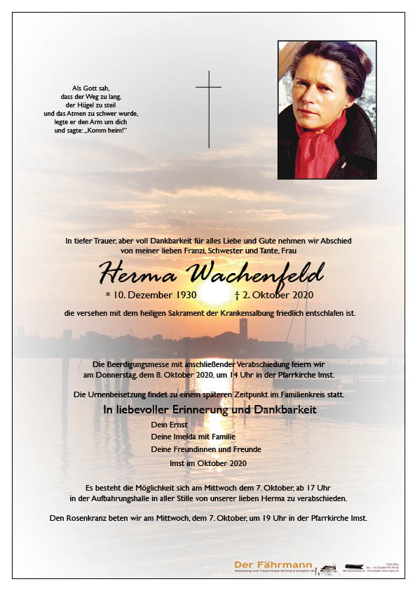 Aufbahrungs-Ort: am Mi, dem 7.10, ab 16.00, in der Aufbahrunshalle Imst