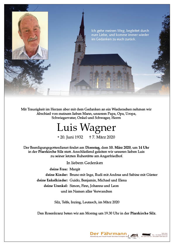 Liebe Tante Margit mit Fam. Es tut mir weh unseren Onkel Lois verabschiede n zu müssen .Viel Kraft werde ihn nie vergessen bin in Gedanken bei Euch Christa aus Sillian