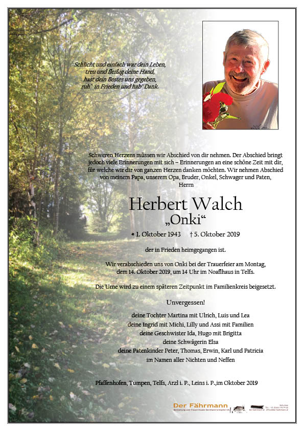 Kondolenzbuch für Walch Herbert