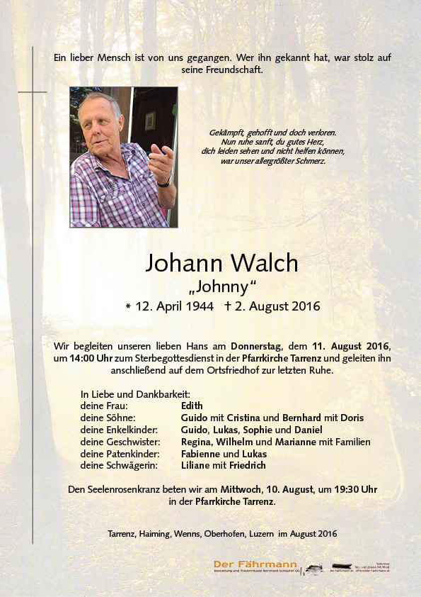 Kondolenzbuch für Walch Johann