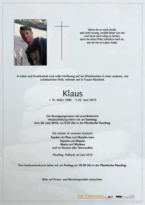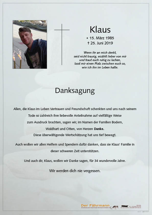 Viel Kraft für die Familie, Klaus du bleibst für unvegessen