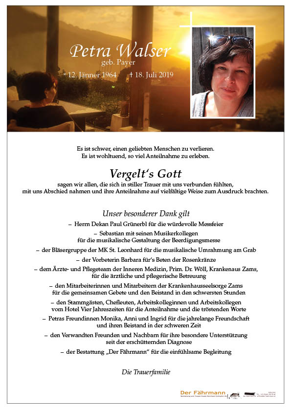 lieber lois, liebe kinder von petra, lieber markus! wir trauern mit euch um petra.