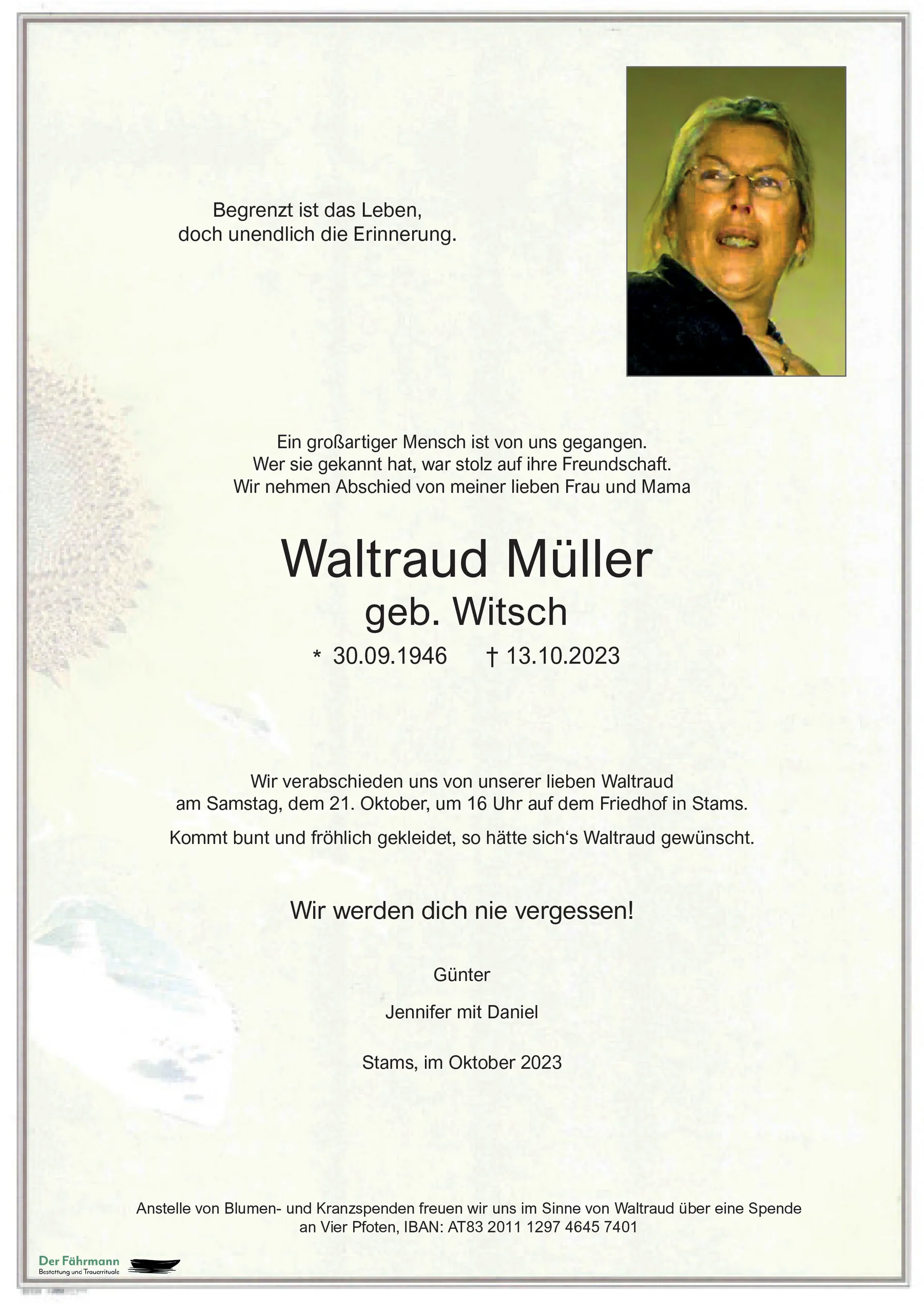 Pfiat di Waldtraut Ruhe in Frieden christine Moser