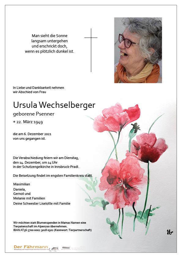 Liebe Uschi! Wir werden dich sehr vermissen und uns an all die schönen Momente mit dir immer gerne erinnern.
