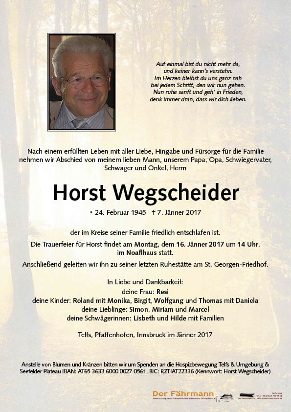 Kondolenzbuch für Wegscheider Horst