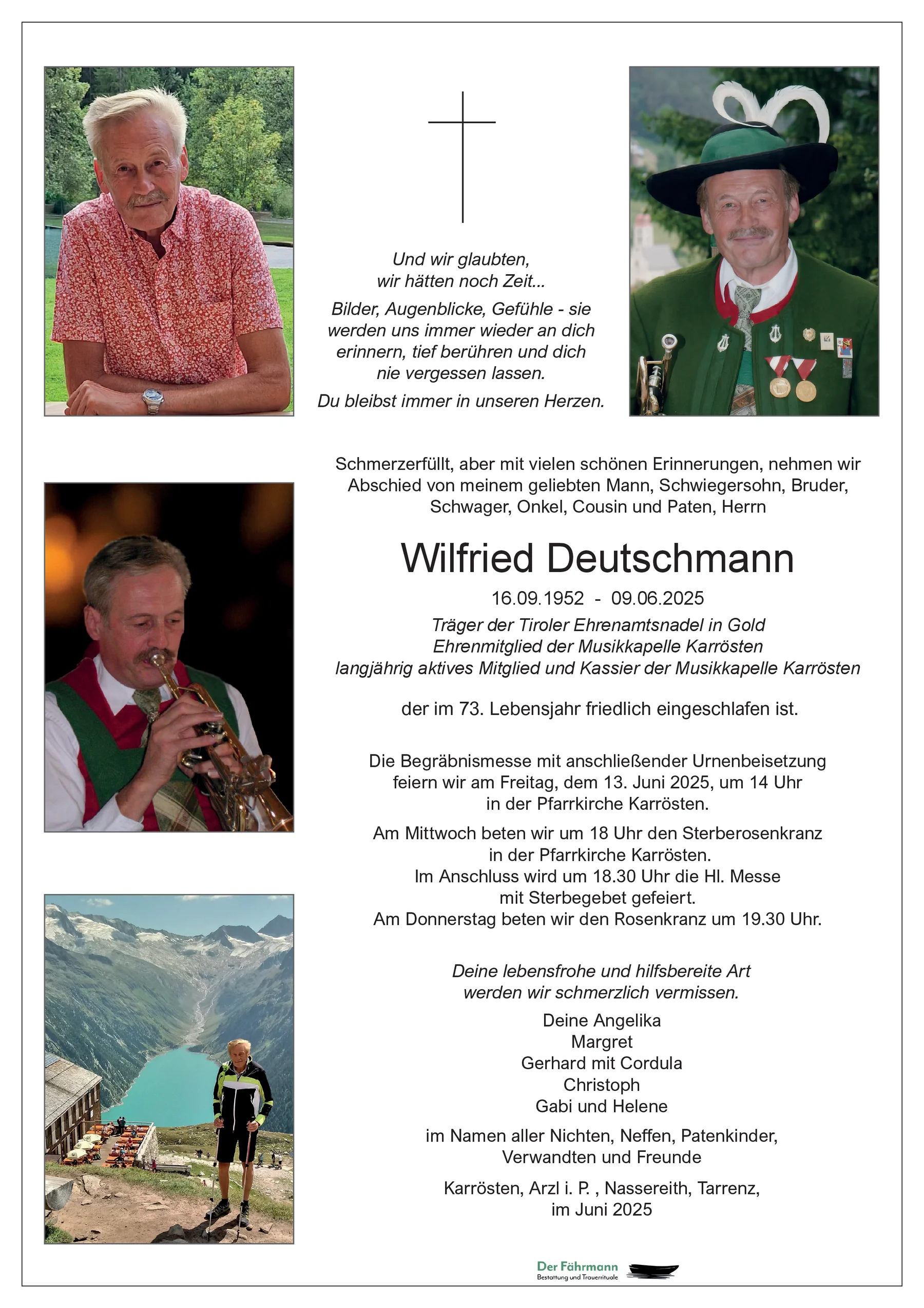 Die traurigsten Stunden sind die, in denen man geliebte Menschen zu Grabe geleiten muß. Gott möge den Trauernden in diesen schweren Stunden Trost und Kraft verleihen.