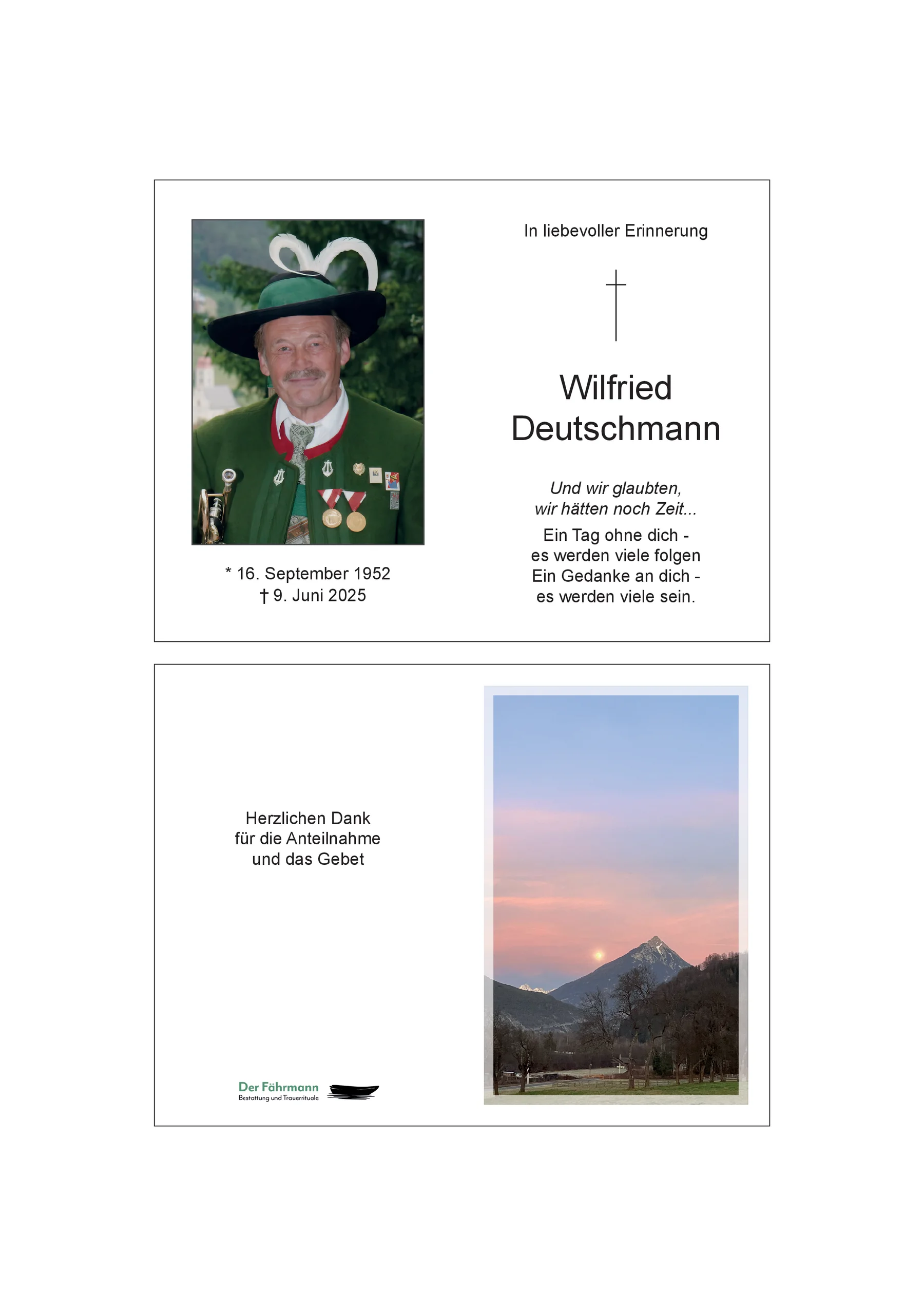 Aufrichtige Anteilnahme Fam. Thurner Gebhard und Ingrid