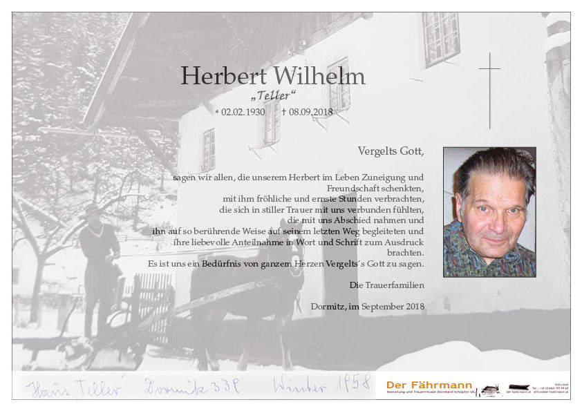 Aufrichtige Anteilnahme zum Tode von Herbert