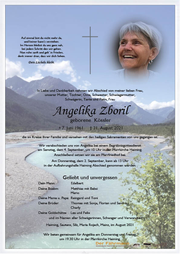 Ruhe in Frieden Angelika, viel Kraft der Familie