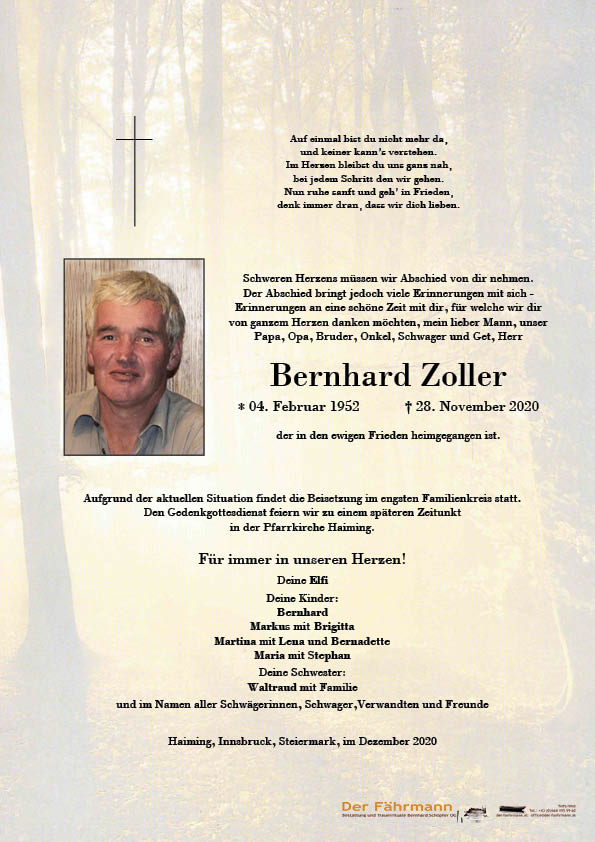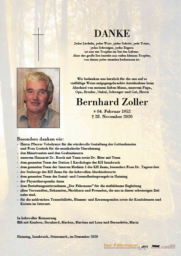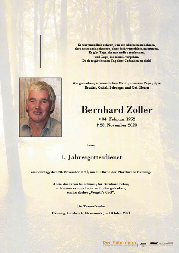 Kondolenzbuch für Zoller Bernhard