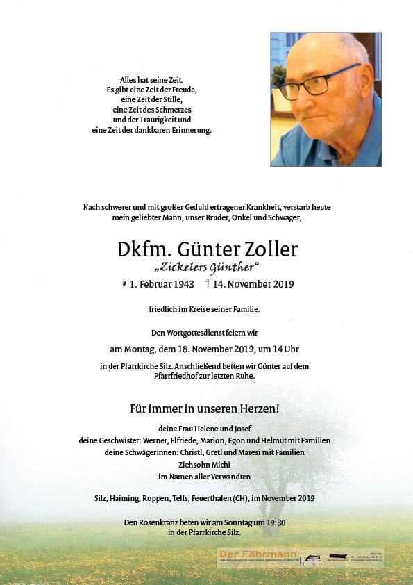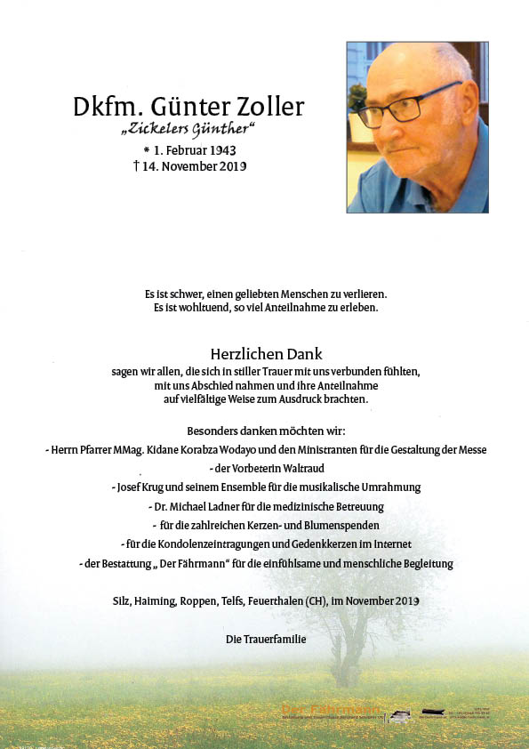 Kondolenzbuch für Zoller Günter